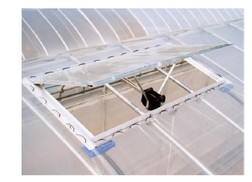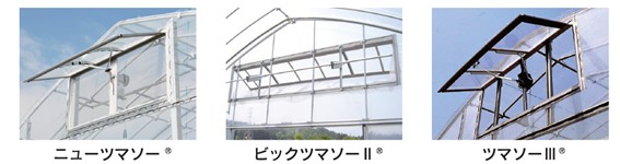 タンテンソーを開けるとハウス上部方向に気流が発生し、熱がうまく逃げていることがわかります。