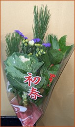 一般的には松が入っていることが多く、1月のお墓にお供えしてあるとかっこよく見えると思います。他にもハボタンが入っていることも多いですね。ハボタンの花言葉は「祝福」「利益」など縁起の良い植物ですが、迎春用にハボタンが入っている理由は縁起のよい植物「牡丹」に花姿と旬の時期がよく似ていることが始まりとされています。