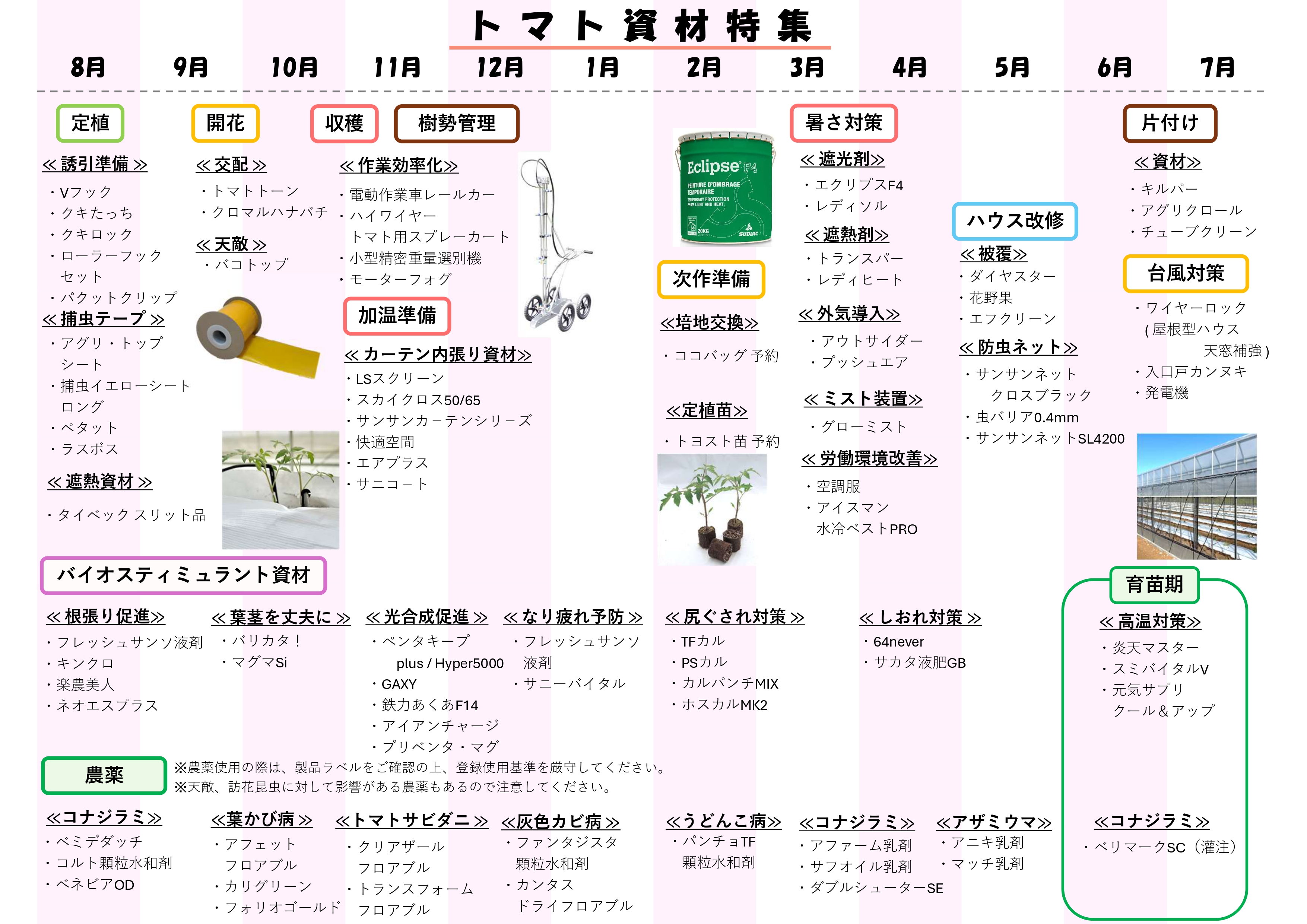 イチゴ栽培特集に続きまして、トマト栽培用の資材特集を作成いたしました!