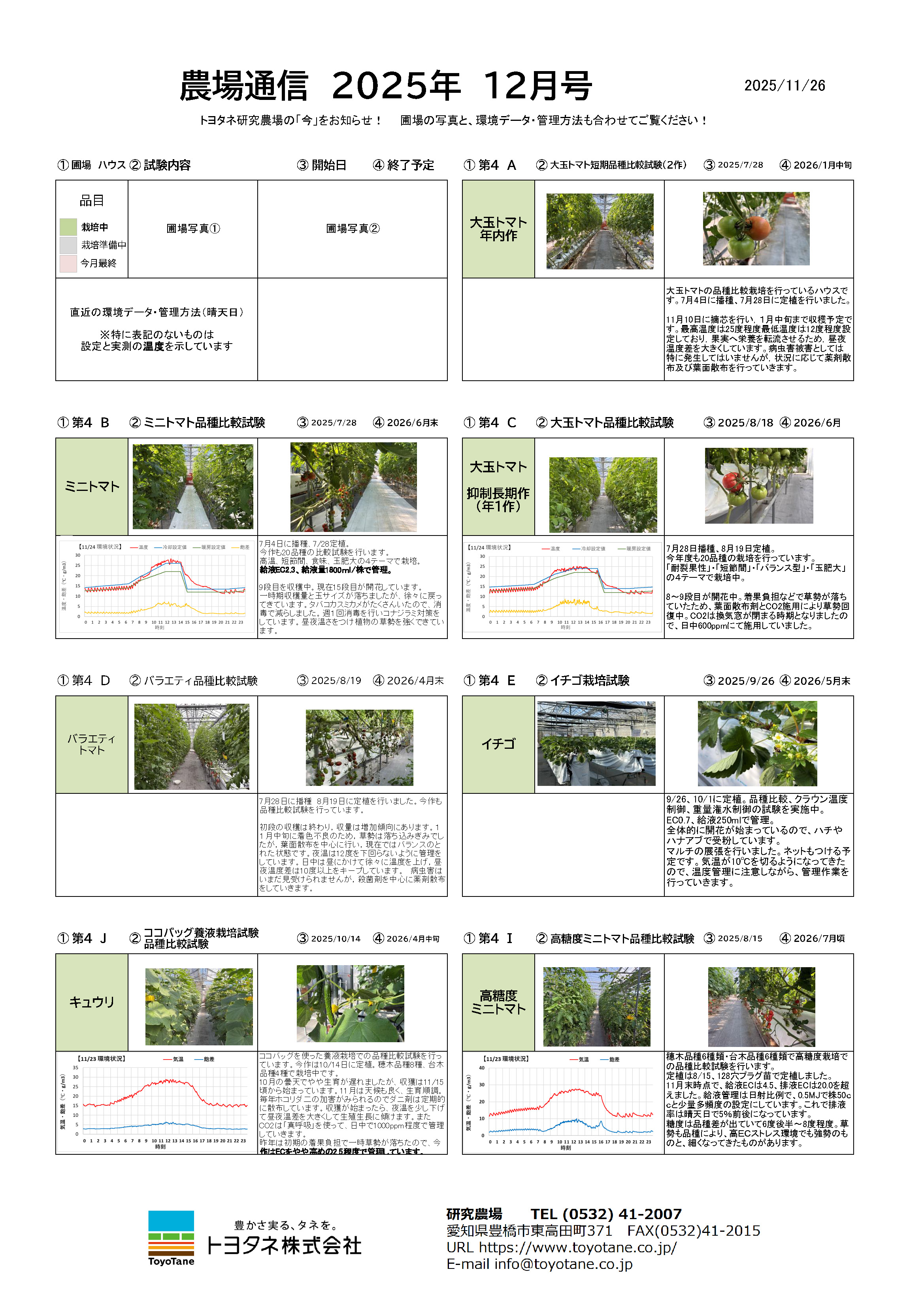 ・各ハウスの前月の状況を、写真とコメントでご紹介しています。