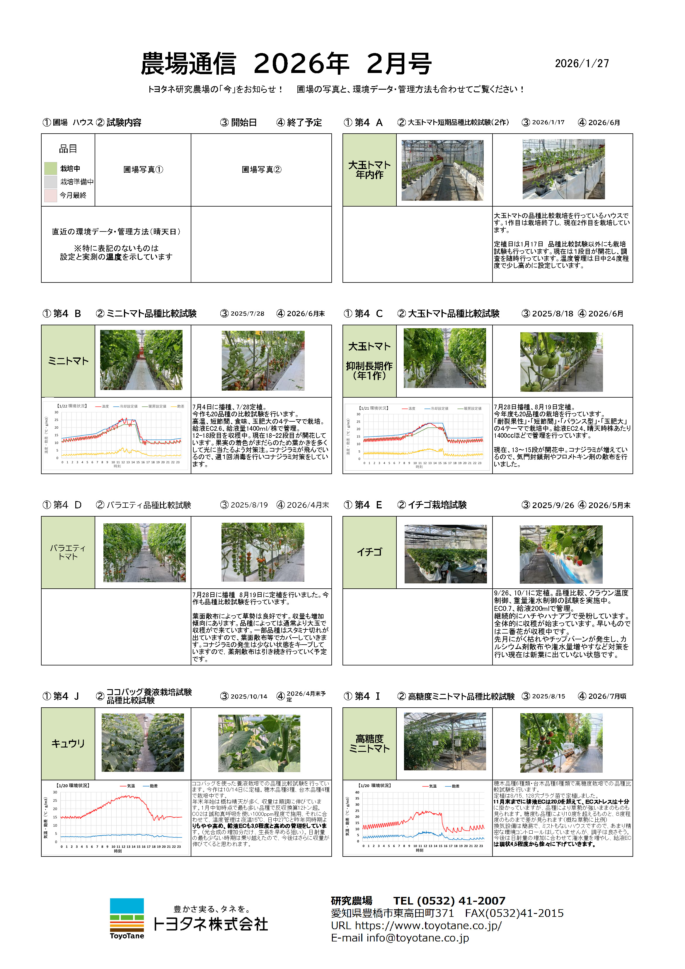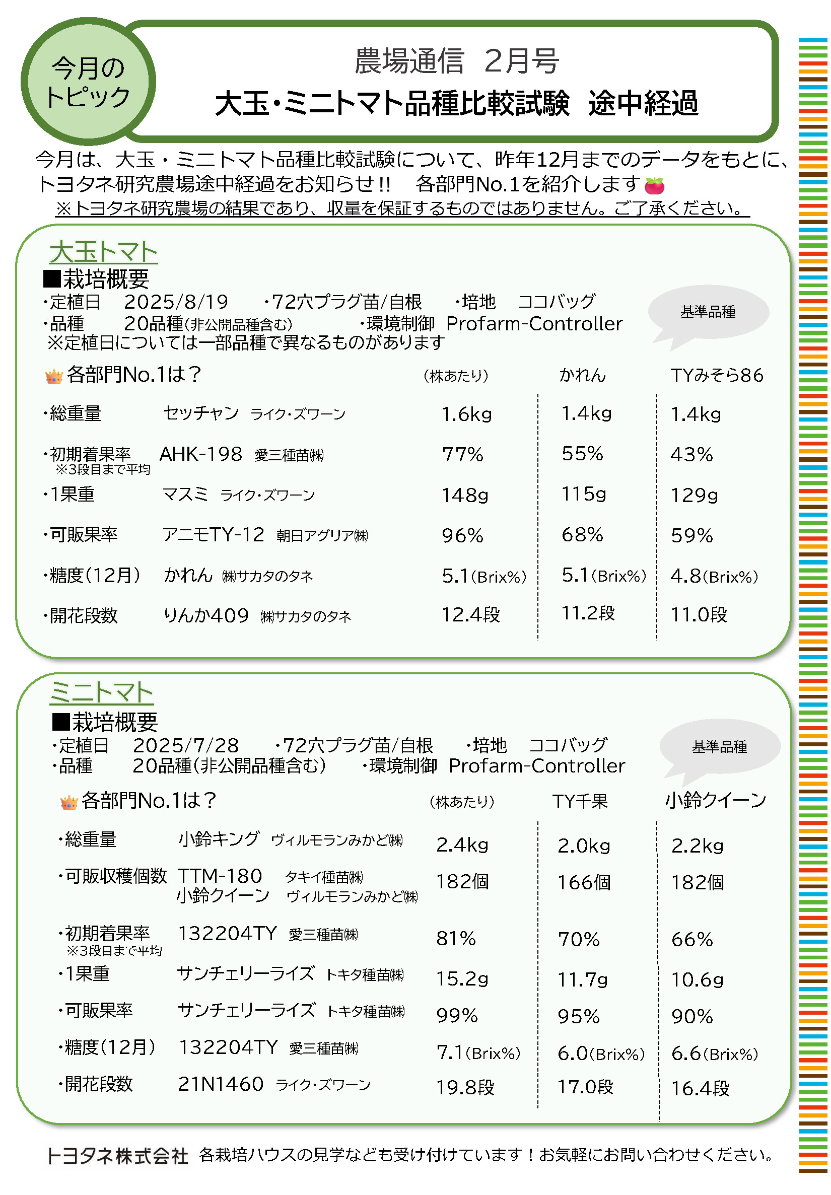 ・今月は「大玉・ミニトマト品種比較試験途中経過」です。