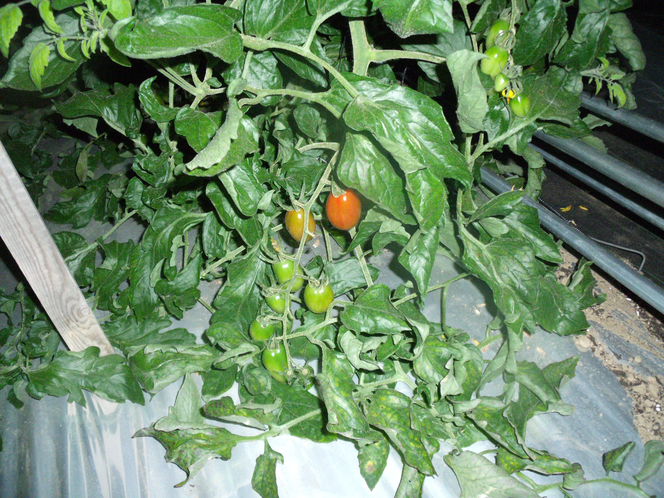 ハウス内のミニトマトは、ようやく着果負担も落ち着いて、少しずつ回復傾向にありますが、1本だけ日中萎れる株を発見。