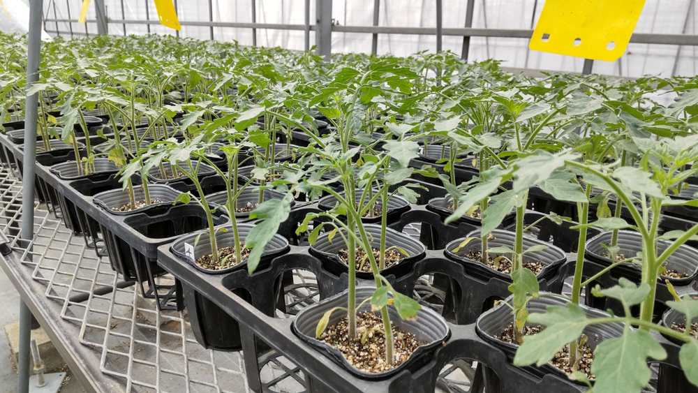 研究農場では、昨年8月に定植したトマトの栽培が今年7月で終了し、一息つく間も無く、次作の育苗が始まっています。先日はココバッグに定植するトマト苗の『鉢上げ』を行いました。