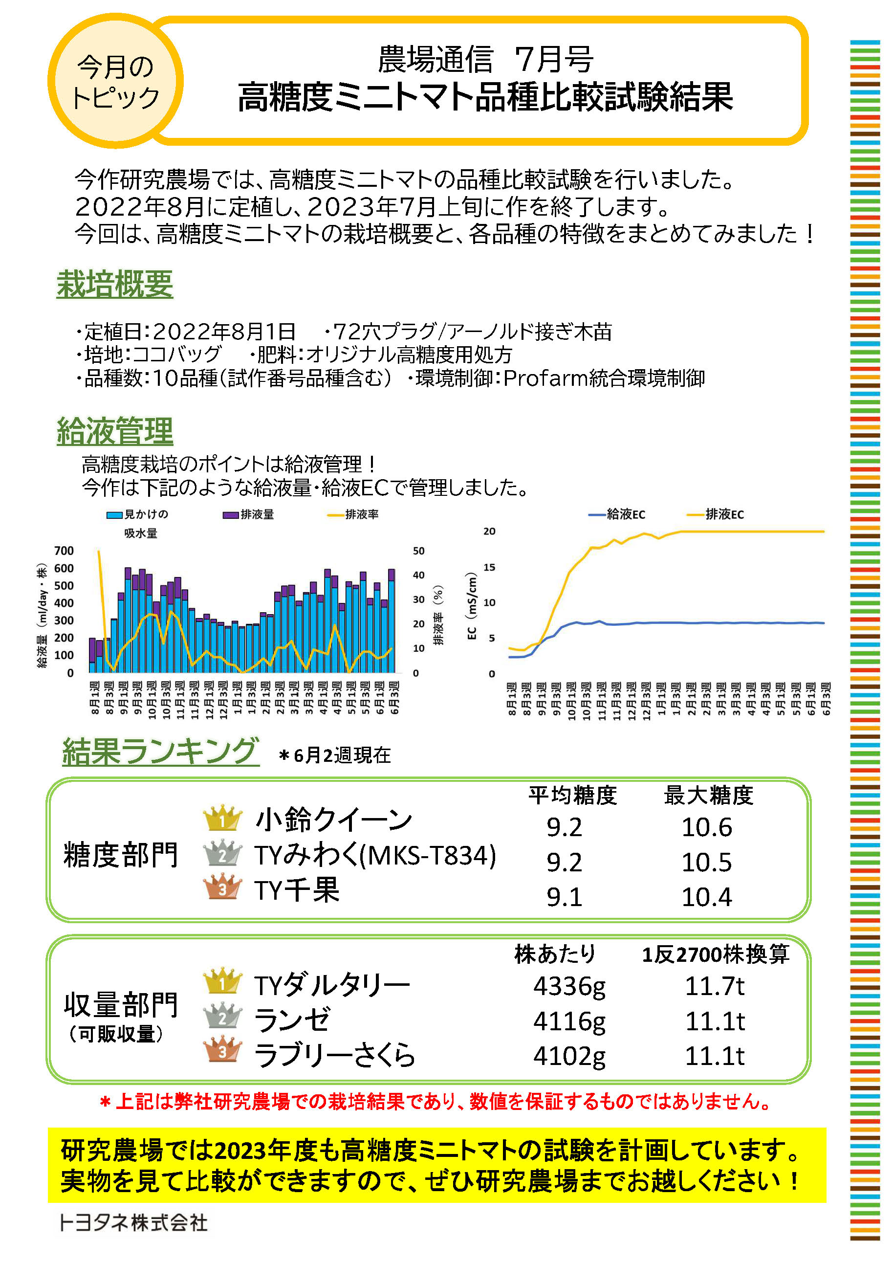 今月は「高糖度ミニトマト品種比較試験結果」です。