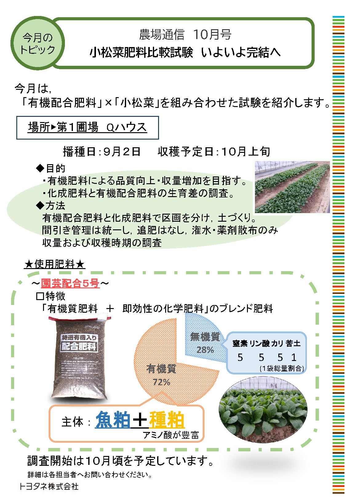 今月は「小松菜肥料比較試験 いよいよ完結へ」です。