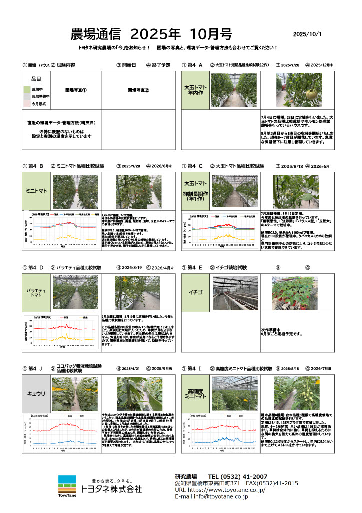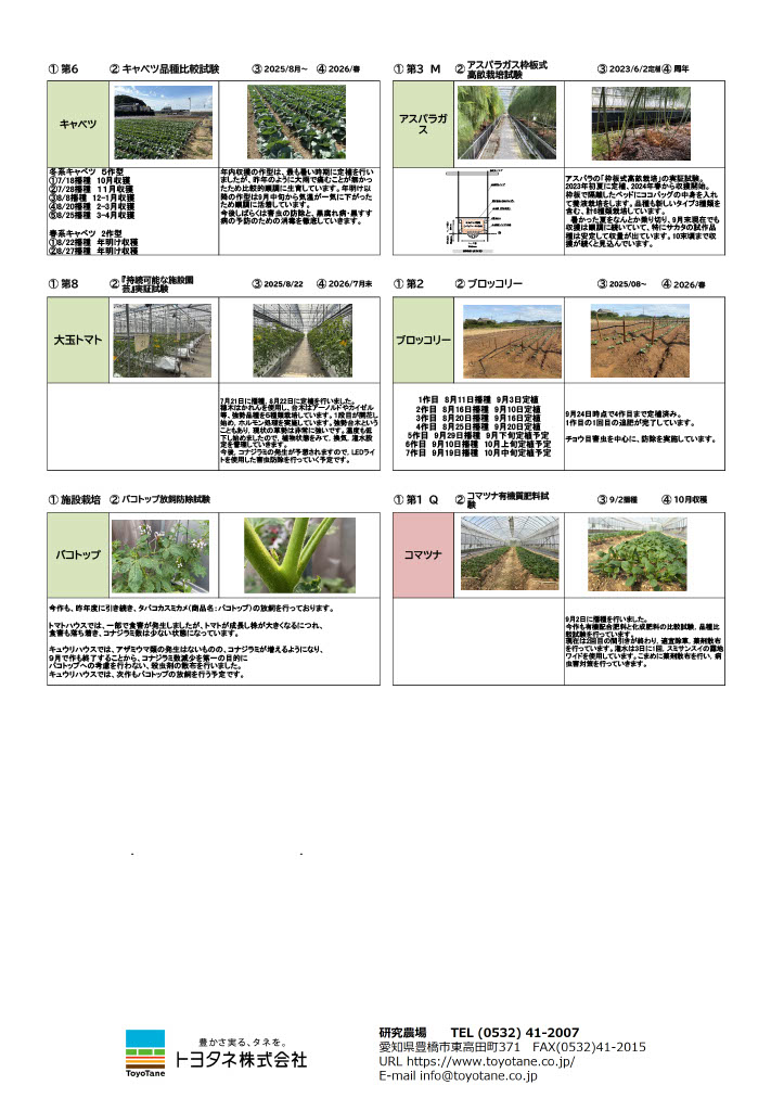 愛知県豊橋市東高田町にある研究農場より栽培研究の様子をお届けします。