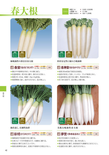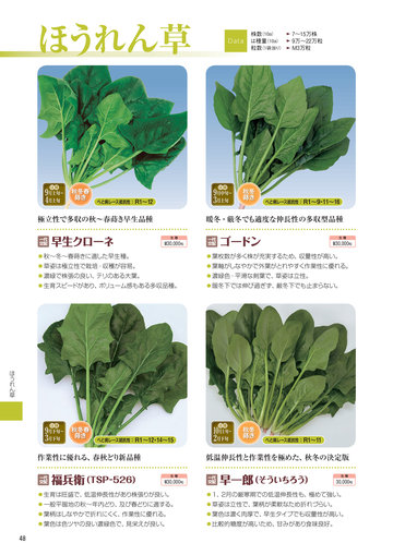 胡瓜 …………………………………… 38 オクラ ………………………………… 39 初夏キャベツ ………………………… 40 春ブロッコリー ……………………… 41 春大根 ………………………………… 42 人参 …………………………………… 44 枝豆 …………………………………… 45 チンゲン菜 …………………………… 46 小松菜 ………………………………… 47 ほうれん草 …………………………… 48 葉葱 …………………………………… 49 根深葱 ………………………………… 50