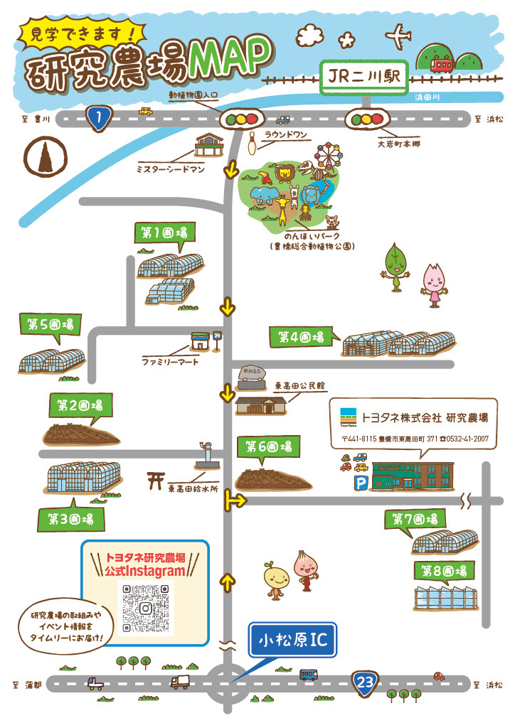 研究農場の圃場・ハウスでは、当社オリジナル商品を多数展示しております。