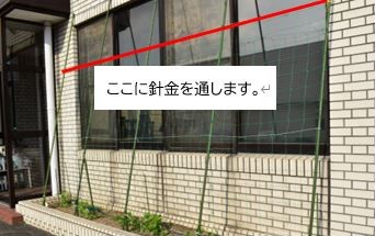 ⑦支柱の1m程の高さに針金を横に通し、支柱に固定する。