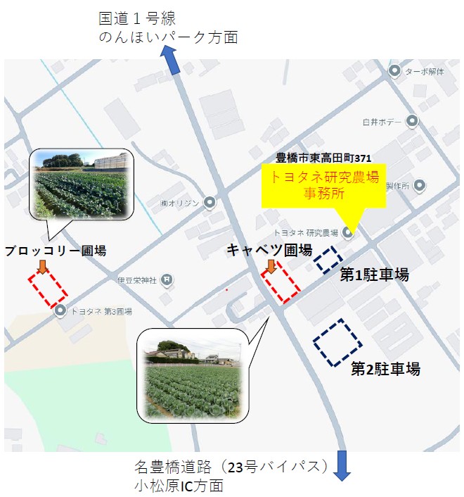 〒441-8115 愛知県豊橋市東高田町。)(GoogleMap『トヨタネ研究農場』で検索できます)