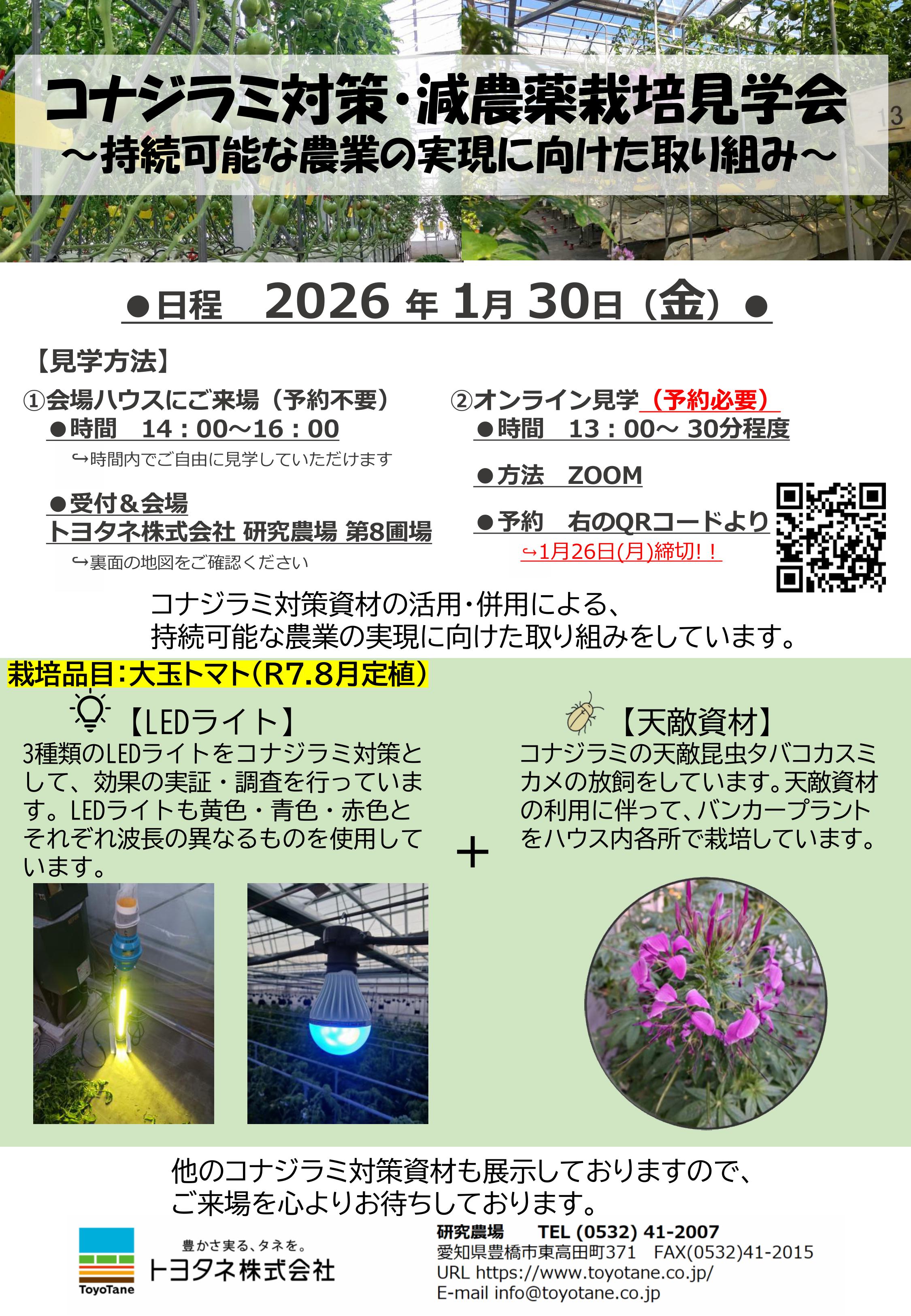 2026年1回目は、持続可能な農業の取り組みの中でもコナジラミ対策に焦点をあてた見学会を開催いたします。
