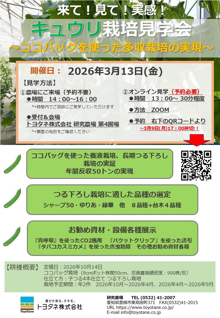 農場イベント 『キュウリ栽培見学会』開催のお知らせです!