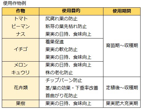 定期的な葉面散布によって、チップバ-ンや果実の尻腐れを未然に防ぐことができるばかりでなく、作物の品質と収量の改善効果も高まります。